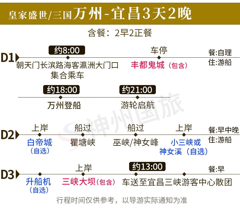 如选择增加三峡大坝升船机自费项目,则行程如下: