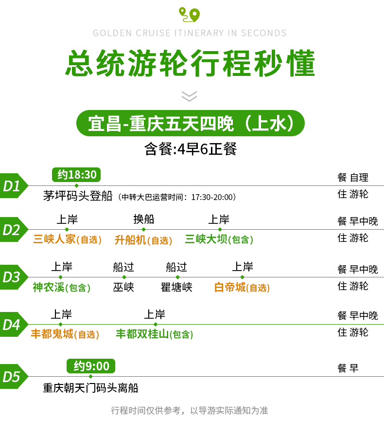 08、游轮行程中所列时间、游览景点、上下船码头及抵离时间仅供参考,游轮将根据实际情况做出合理调整,最终以执行该航次的游船具体安排为准;
